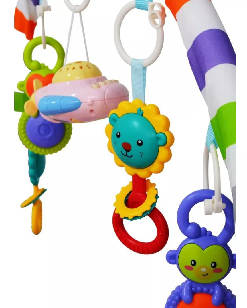 El Gimnasio para bebe estimula las habilidades sensoriales, cognitivas y de coordinación entre el tacto y la vista.Los gimnasio o tapete de actividades para bebes ayudaran a tu pequeño a desarrollar potencializar sus funciones cerebrales en diferentes planos intelectual físico y efectivo , mediante juegos y ejercicios respectivo a través del juego estarás creando un lazo mucho más estrecho con tu bebé el estar acostumbrado a tenerte cerca en un tiempo dedicado ahí en el que se divierten y podrás hablarle acariciarlo y realizar juegos en el que ejercita su cuerpo y mente.El gimnasio musical le ayudará a su desarrollo físico pues estos están diseñados de tal manera que usar los ayuda a incrementar la fuerza flexibilidad natural de sus músculos además es un gran ayuda para prepararlos para actividades como gatear saltar o caminar. Garantía: Cuenta con 10 días de garantía por defectos de fábrica únicamente, daños ocasionados por terceros no cubre garantía, si el pedido llega roto o incompleto reportar como máximo 10 días (si se reportan a los días después se asumirá como daño por terceros) y si la orden está trocada o confundida se le hará el respectivo cambio.Nota: Para devoluciones o garantía tener en cuenta que el paquete se debe enviar con buen embalaje, igual o mejor como les llega el producto inicialmente